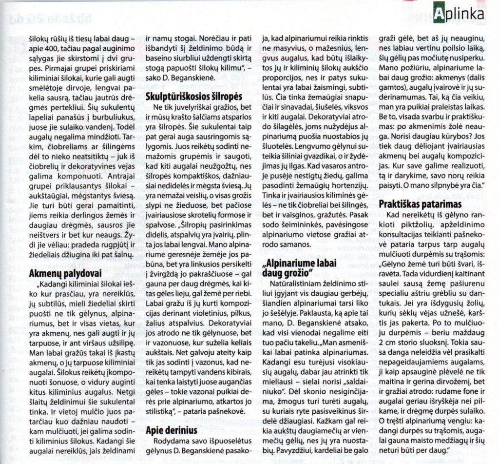 Apželdinimo darbai ir jaukios aplinkos kūrimas nesibaigia niekada. Ne tik dėl to, kad augalams reikalinga nuolatinė priežiūra, bet ir todėl, kad dažniausiai mums patiems vis norisi kažko naujo, kažko truputį kitokio, tad savo kiemo tvarkymas yra nuolatinis kūrybinis procesas, leidžiantis pasitelkti vaizduotę ir įgyvendinti vis naujas idėjas.