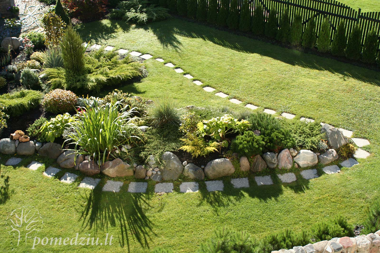 Alpinariumas Paskelbta 2017-03-28 1600 × 1067 Plytelės, sudėtos aplink alpinariumą ir vejoje, pagyvina vaizdą ir palengvina priežiūrą.